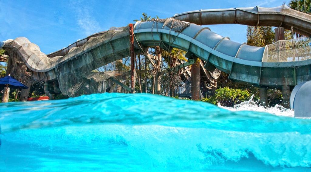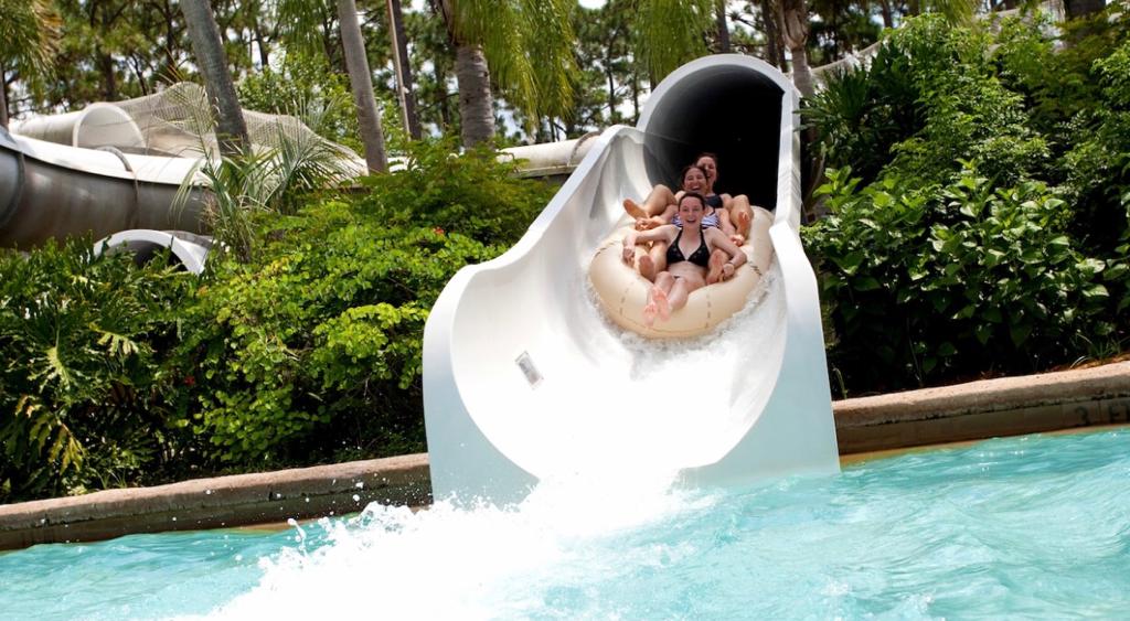 Toboágua onde uma ou três pessoas são impulsionadas por jatos de água através de curvas fechadas e declives acentuados.