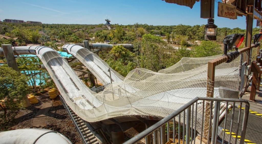 Você descerá 400 pés, (121,92m) em alta velocidade, tipo uma montanha-russa, em uma boia, por quedas repentinas, curvas fechadas, escuras e abertas, você é impulsionado por jatos de água.
