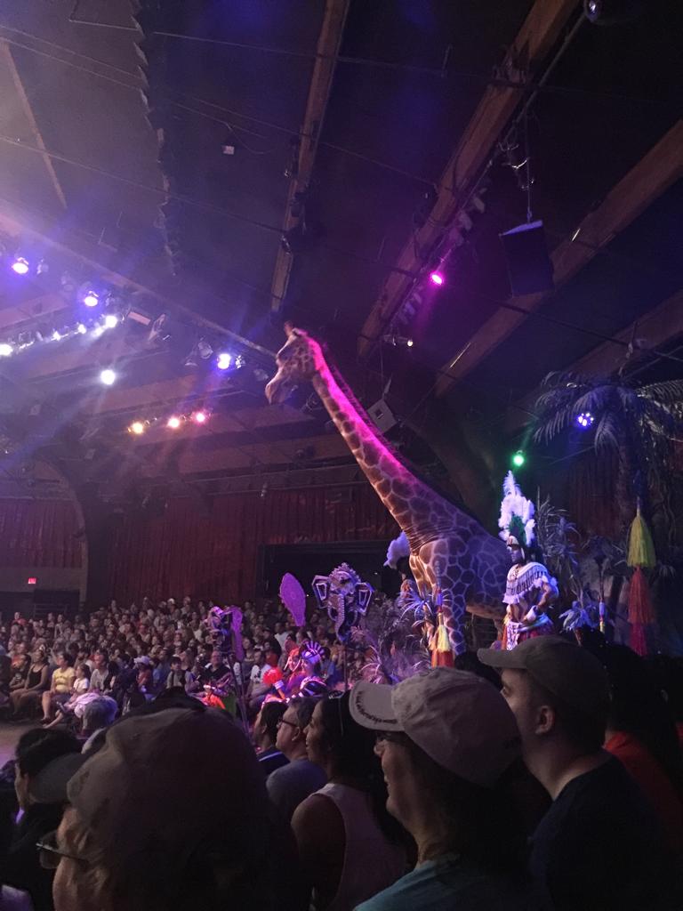 UM show ao estilo da Broadway repleto de musicas, fantoches imensos, dançarinos, acrobatas, pernas de pau, e muito mais.