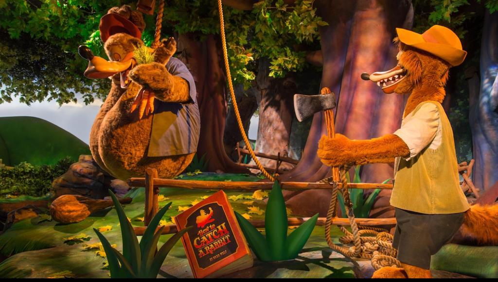 Passe por mais de 100 animais adoráveis em audioanimatrônica, como gansos, sapos, guaxinins, gambás, abelhas, crocodilos e outras criaturas da região cantando temas clássicos Disney, incluindo “Zip-a-Dee-Doo-Dah” e “Ev’rybody’s Got a Laughing Place”.