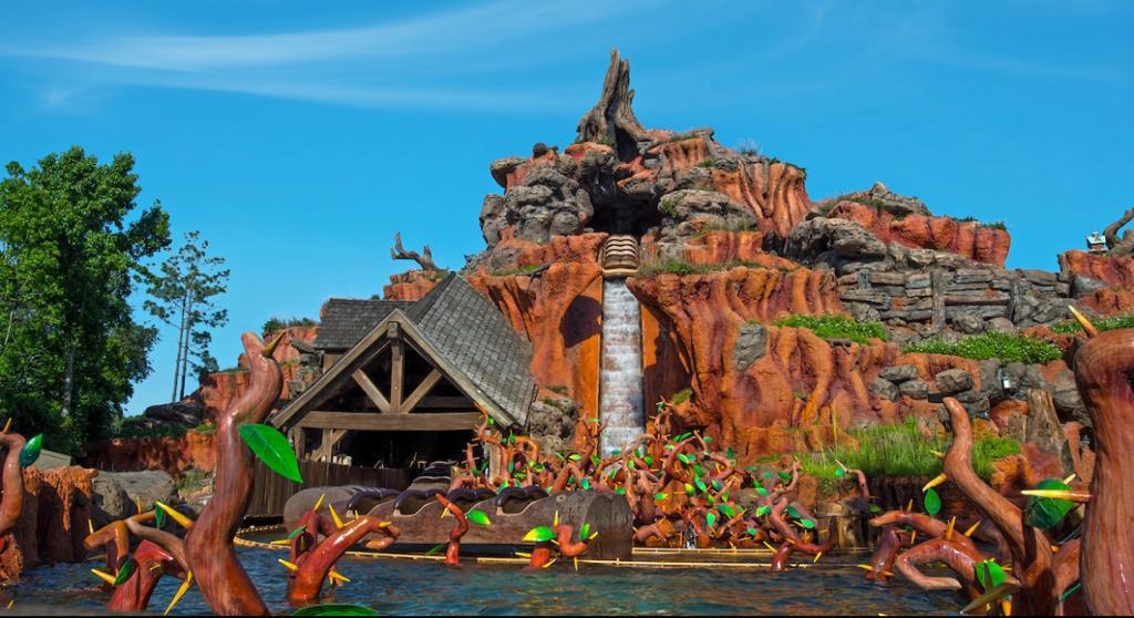Splash Mountain uma aventura em um tronco flutuante com muita diversão com curvas, descidas que te dá um frio na barriga e com certeza sairá molhado.