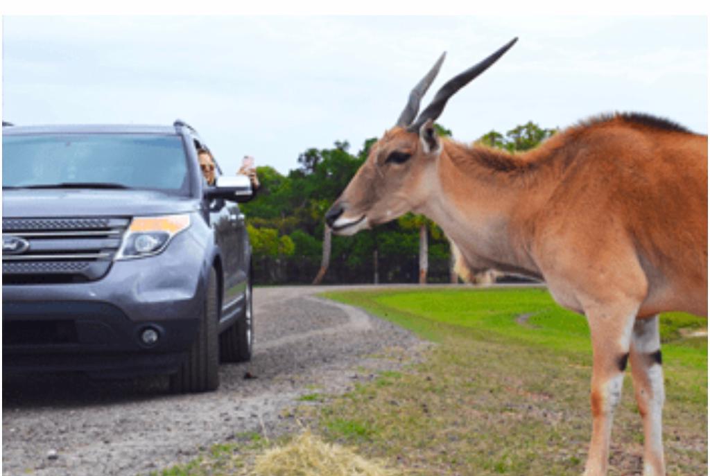 Um Safari com seu próprio carro, onde você vai conhecer mais de 100 animais nativos e exóticos. Andando livremente, animais de todo mundo. O passeio leva entorno de 1 hora expandido 85 acres (344 mil metros quadrados) de paisagens cênicas intocadas. Neste Safari você pode se aproximar de animais selvagens como: girafas, zebras, antílopes, bisonte americano e muito mais.