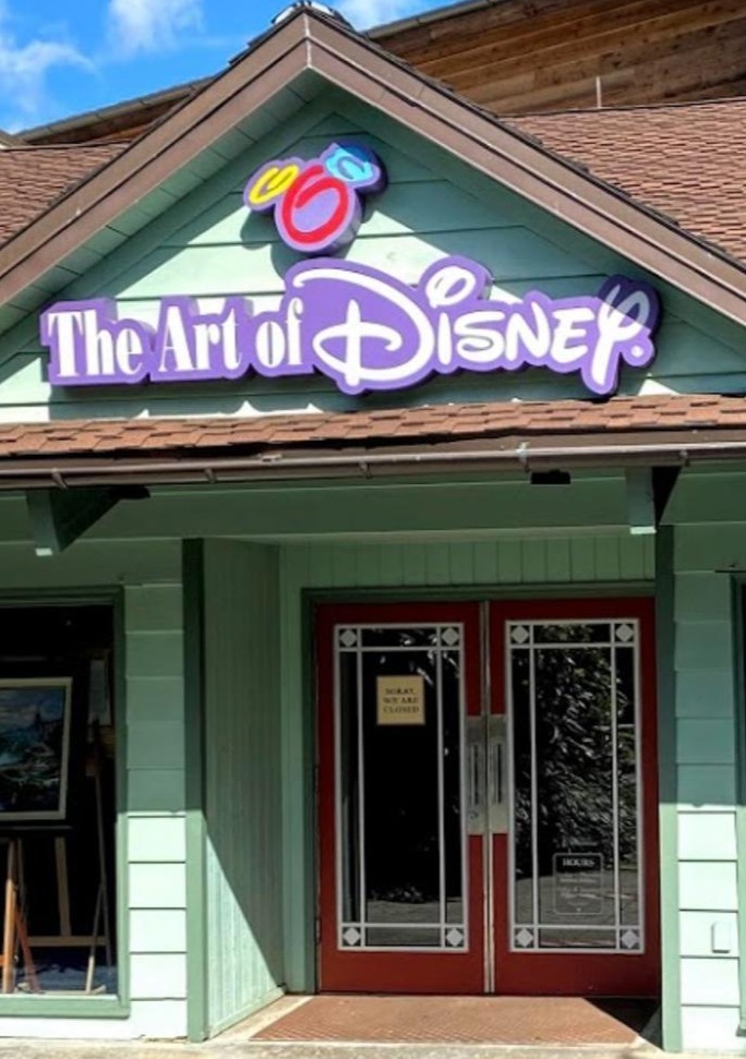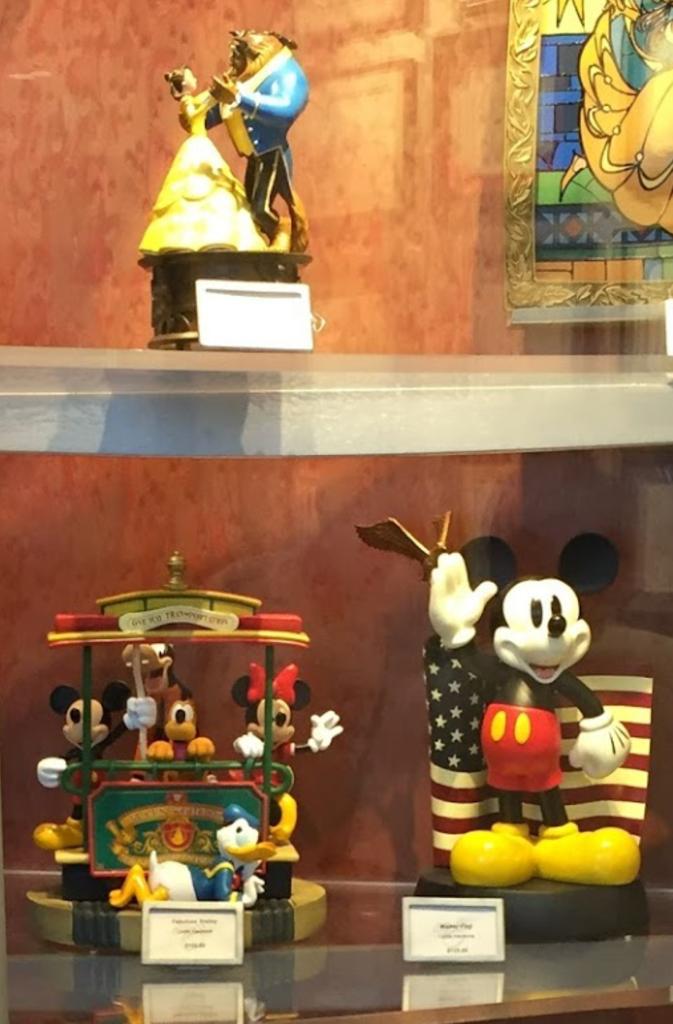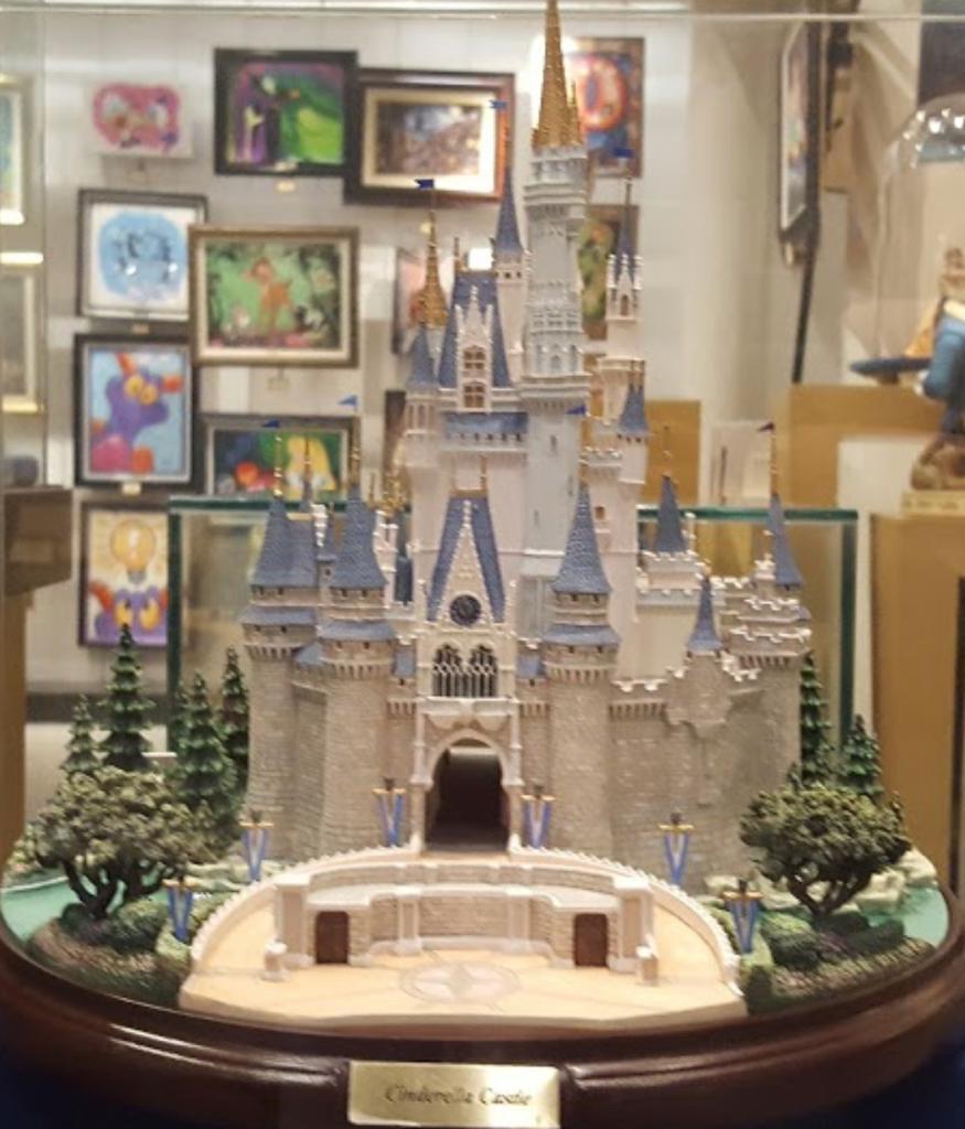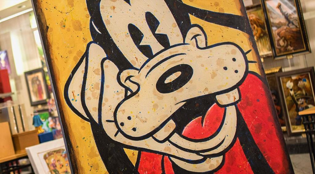 Loja estilo galeria para ver obras de arte deslumbrantes e itens colecionáveis inspirados em filmes clássicos, parques temáticos e personagens da Disney.