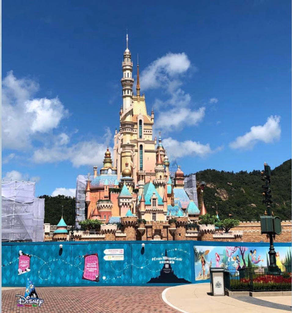 Novo castelo da Disneyland Hong Kong (Castle of Magical Dreams) em construção e quando ficar pronto ficará no lugar do Castelo da Bela Adormecida.