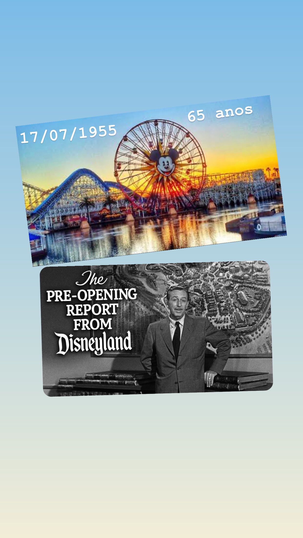 65 anos Walt Disney, estava realizando o sonho onde famílias de todas as idades pudessem se divertir juntos. Criou um lugar mágico que é amado por crianças, adolescentes, adultos, idosos, onde a idade não tem importância, porque o que importa mesmo é deixar a magia tomar conta e se divertir.
