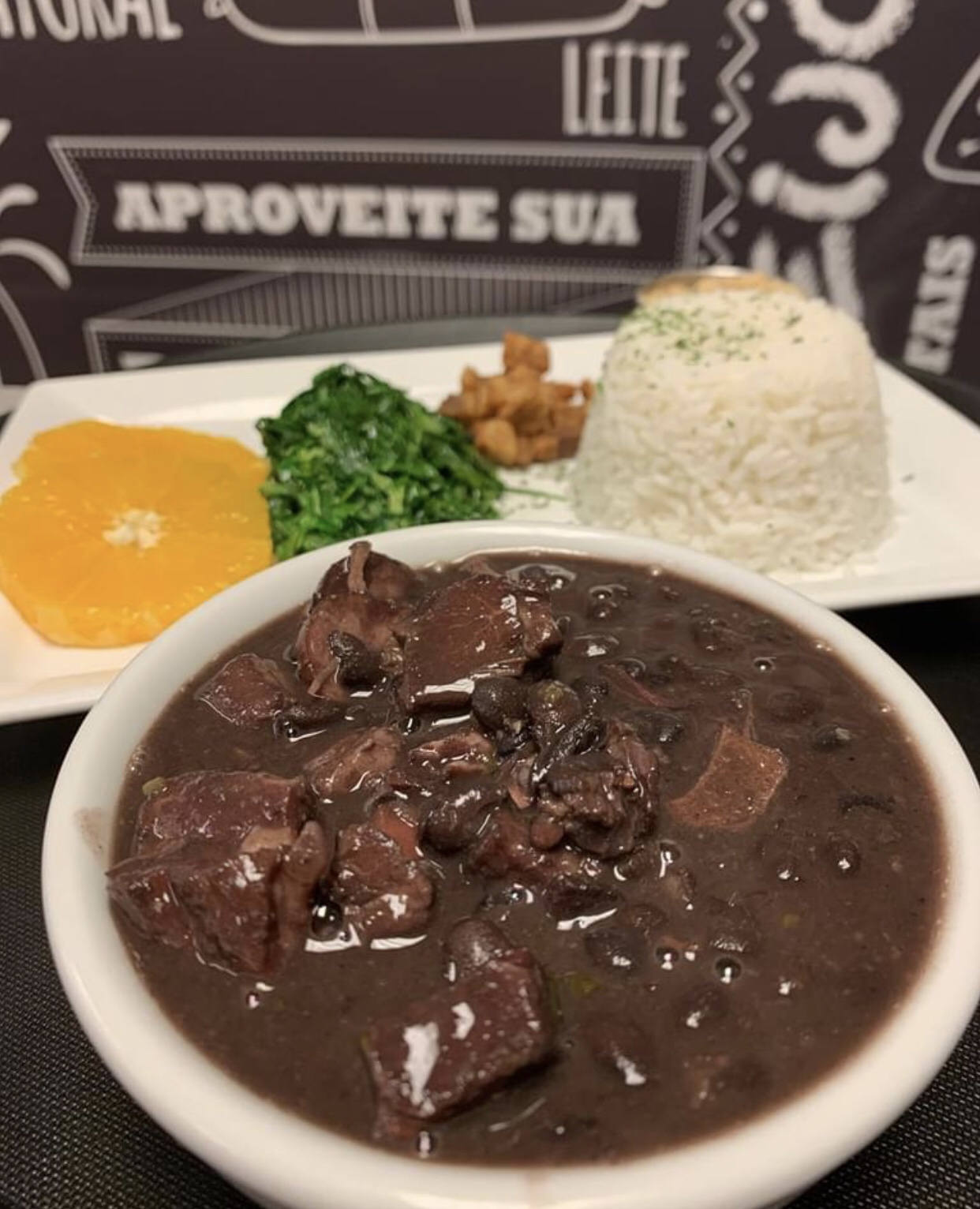 Quarta-feira– Feijoada, acompanha: arroz, couve, farofa, torresmo e laranja. Preço individual $16,90 ou para 4 pessoas $64,00