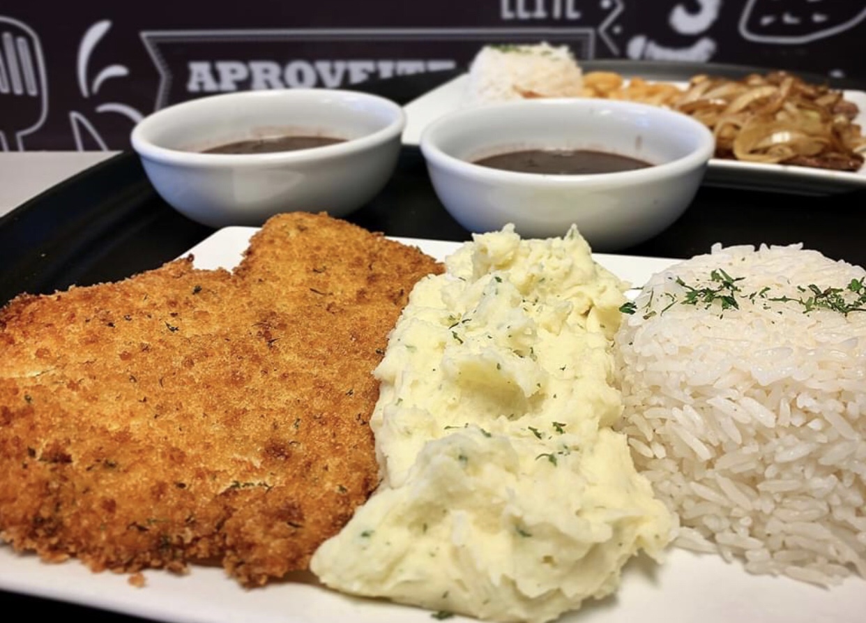 Quinta-feira- Milanesa de carne, arroz, feijão, purê de batatas. Preço individual $14,90 e para 4 pessoas $55,00.