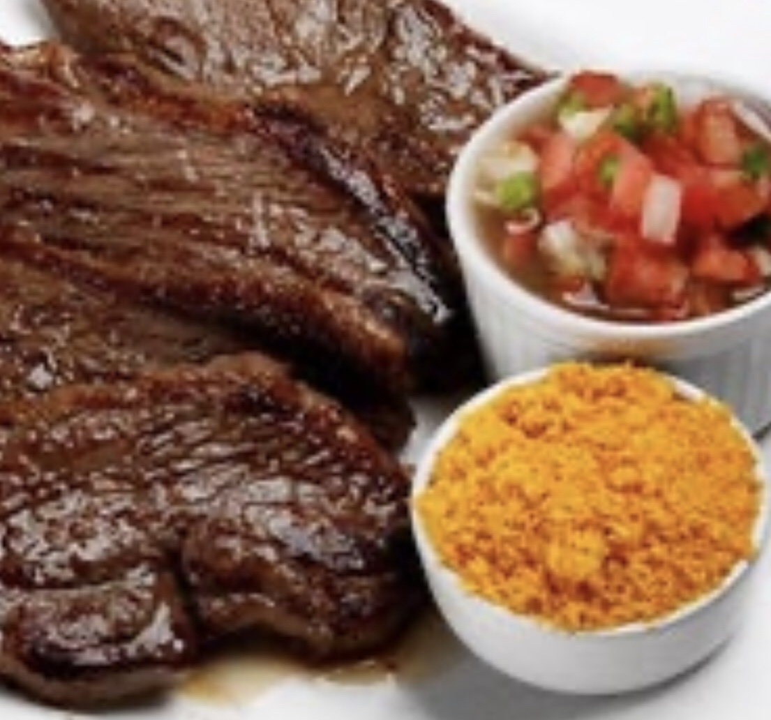 Picanha Gregalhada – arroz, feijão, batata frita e farofa.