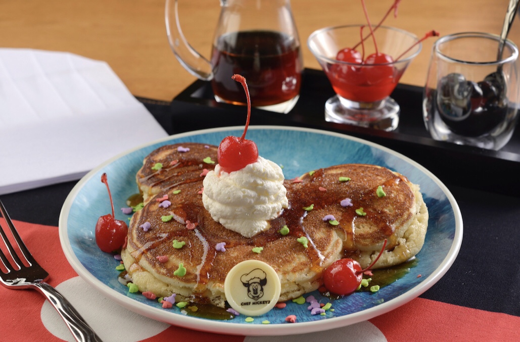 Você poderá experimentar a nova panqueca “Celebration” do Mickey, com chantilly, granulado de celebração, pó de pixie cintilante e muito mais.