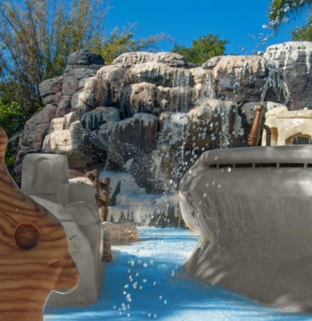 Deixe eles explorarem minitobogãs aquáticos, se divertirem em uma caverna com uma cachoeira e mirarem com um canhão d’água a bordo do rebocador com um vazamento, o S.S. Squirt.