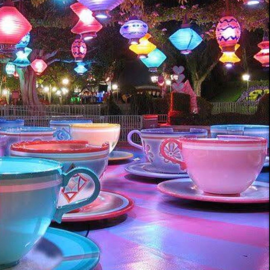 A Mad Tea Party foi inspirada na cena da festa do Mad Hatter na clássica animação Disney Alice in Wonderland e modelada com base na famosa atração de 1955 do Disneyland Park.
