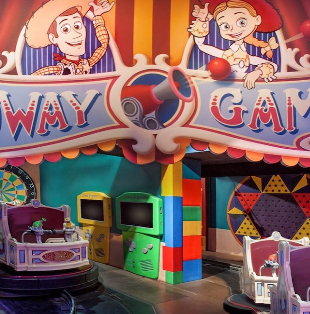 Entre em um emocionante jogo de pontaria em 4D com os Personagens de Toy Story.