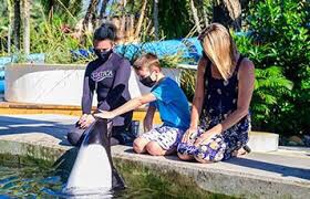 A experiência Close-Up do Commerson é uma visita guiada pelos especialistas em zoologia. Você passará aproximadamente 15 minutos com os golfinhos, mas reserve pelo menos 45 minutos para o programa completo ao planejar o seu dia.