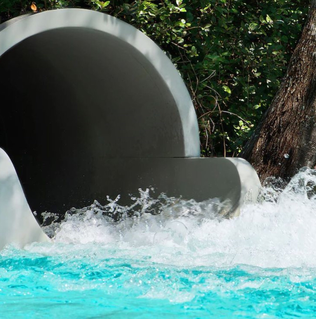 •Os 2 tobogãs externos: entre em uma das boias antes de percorrer o tobogã central para cima, para baixo e em espirais.