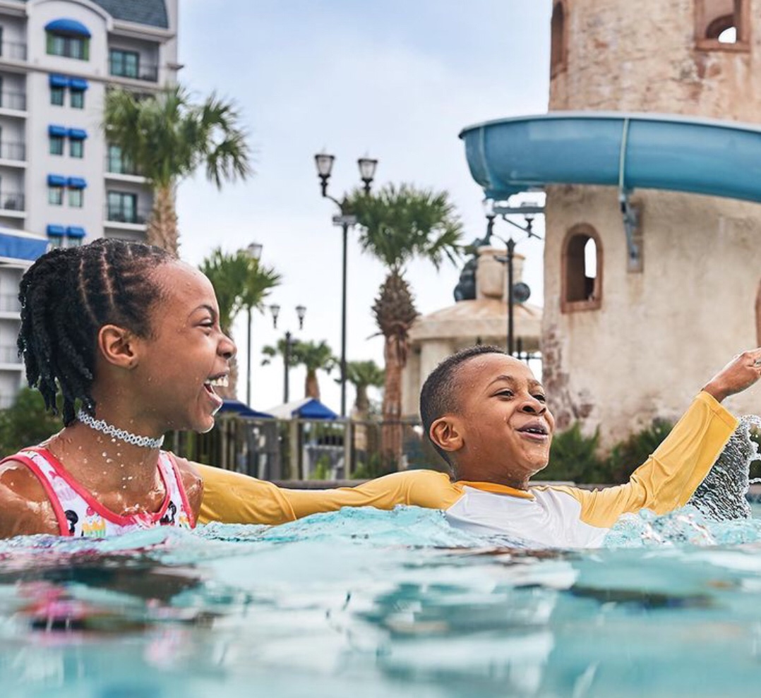 Recreação e relaxamento, além das áreas de piscina com temas exclusivos, você poderá relaxar com a família no Voyageurs ‘Lounge com assentos confortáveis com uma decoração inspirada em uma coleção de títulos de livros que Walt Disney reuniu durante suas viagens para a Europa e outros lugares distantes.