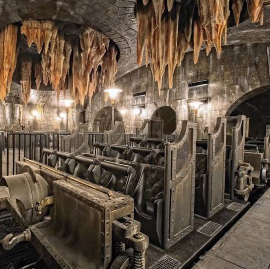 Entre sob um enorme dragão cuspidor de fogo e viaje nas profundezas do subsolo neste emocionante passeio multidimensional. Conforme você navega por perigosas abóbadas subterrâneas, você encontrará Harry, Ron e Hermione. Mas você terá que escapar da ira dos vilões Voldemort ™, Bellatrix, trolls e outras criaturas que se interpõem entre você e um retorno seguro ao Beco Diagonal ™.