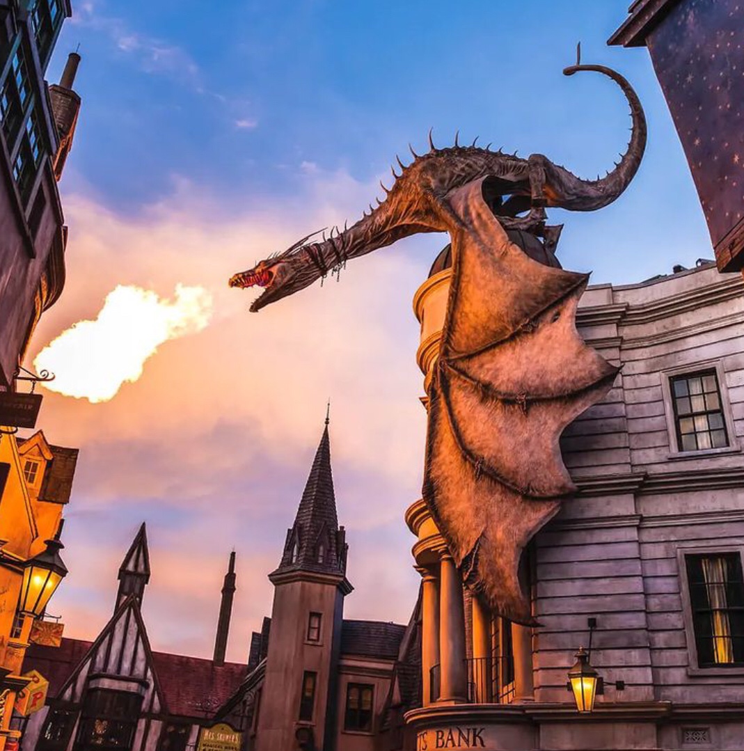 Entre sob um enorme dragão cuspidor de fogo e viaje nas profundezas do subsolo neste emocionante passeio multidimensional. Conforme você navega por perigosas abóbadas subterrâneas, você encontrará Harry, Ron e Hermione. Mas você terá que escapar da ira dos vilões Voldemort ™, Bellatrix, trolls e outras criaturas que se interpõem entre você e um retorno seguro ao Beco Diagonal ™.