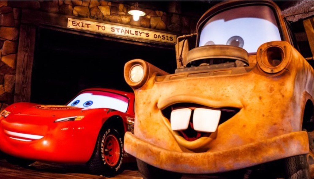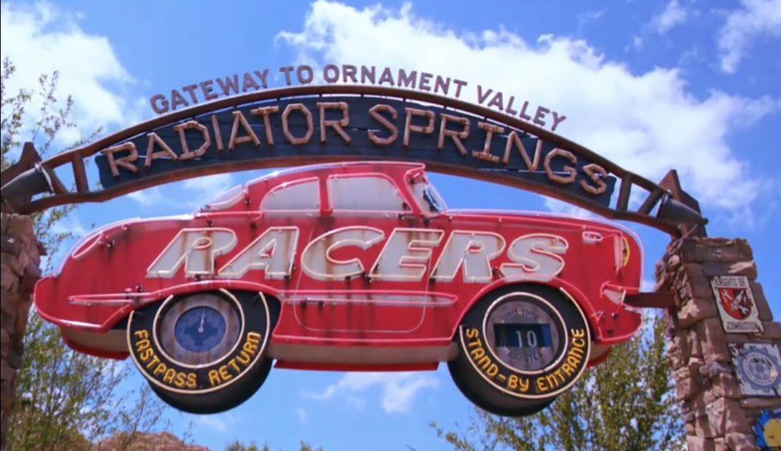 Passeie por Ornament Valley e chegue a Radiator Springs – a cidadezinha mais fofa do condado de Carburetor – onde o filme Cars ganha vida.
