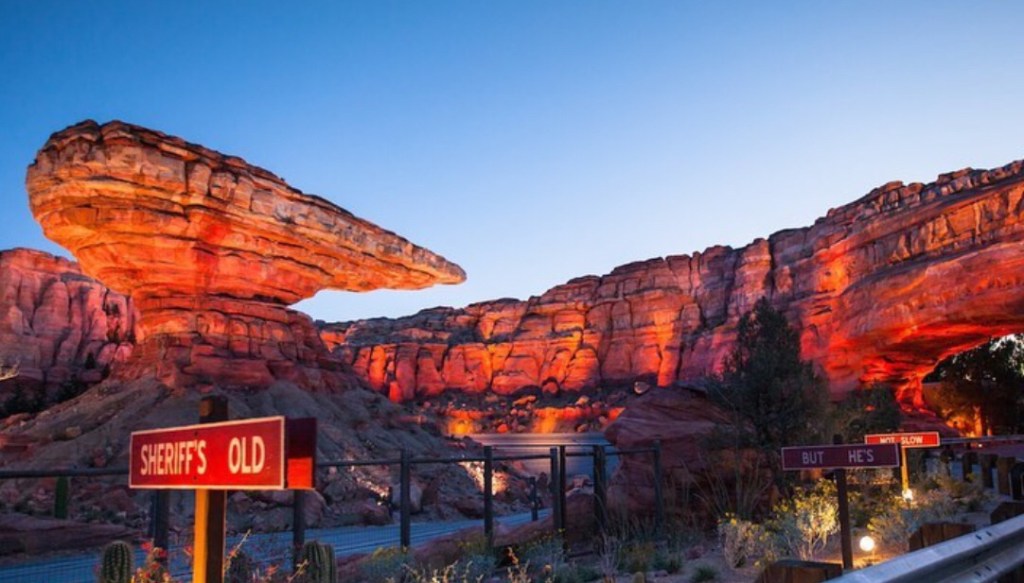Passeie pela paisagem desértica de Cars Land, inspirada no filme Cars da Disney e Pixar.