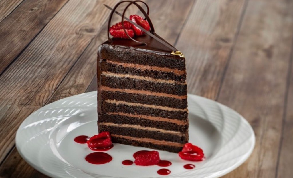 Steakhouse 71Chocolate Cake. São 15 camadas de bolo de chocolate com infusão de uísque, mousse de chocolate e framboesas.
