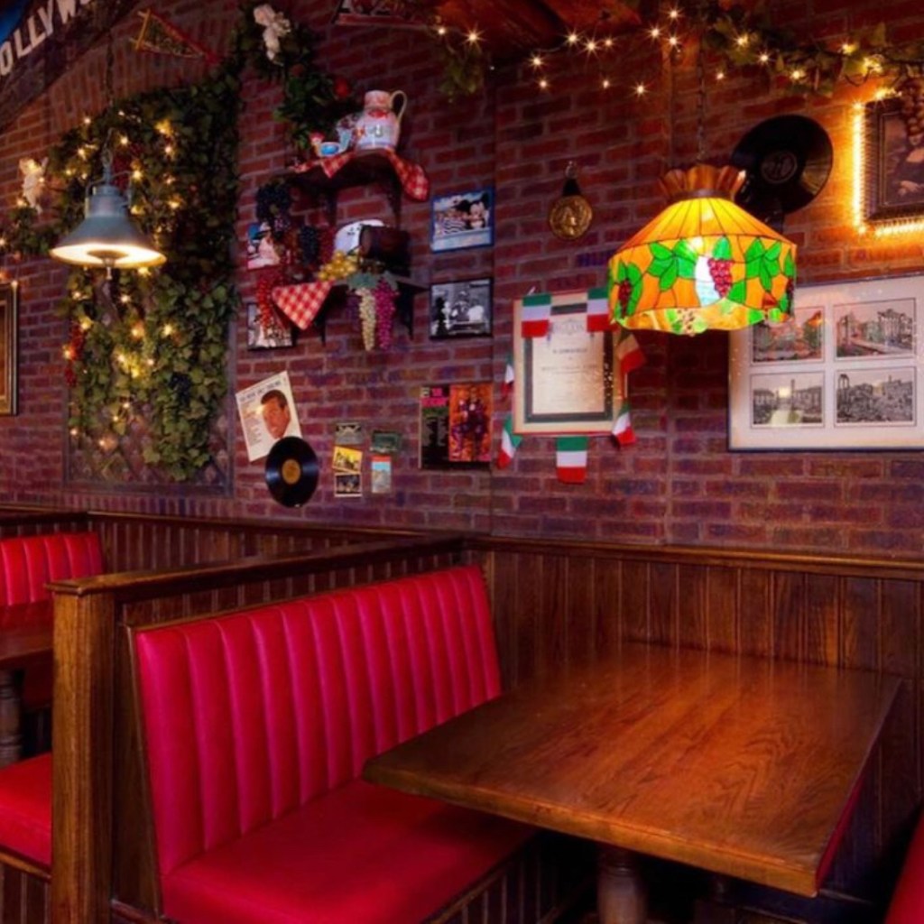 Restaurante italiano server refeições estilo caseiro é casual, divertido, colorido, com um toque da Califórnia.