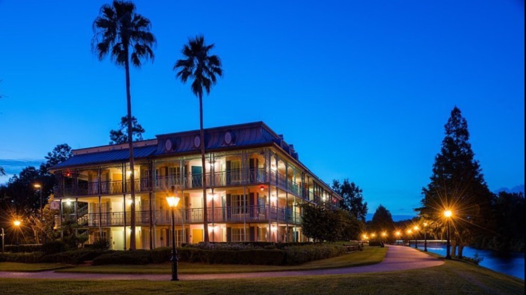 Resort categoria Moderada. Descubra ruas de pedras, luminárias a gás, sacadas trabalhadas em ferro e o aroma das flores de magnólia, além de personagens coloridos do Mardi Gras e o som do jazz. Passeie ao longo das lindas paisagens do Sassagoula River até o Disney’s Port Orleans Resort – Riverside, onde você sentirá o clima do pântano e poderá aproveitar especialidades cajun e crioula.