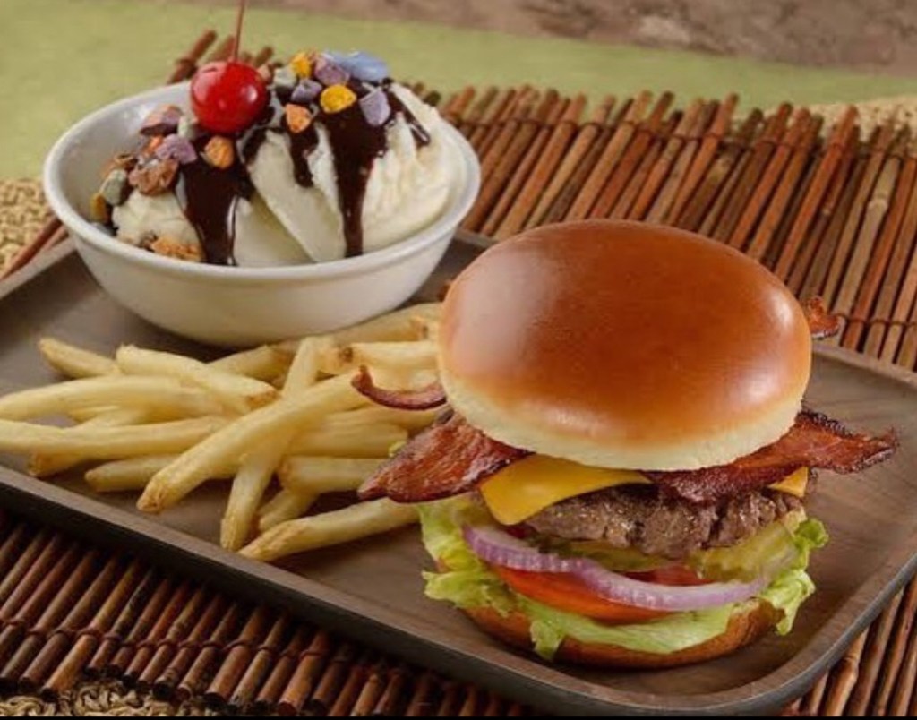 Divirta-se como um estudante de paleontologia enquanto se delicia com hambúrgueres artesanais, nuggets de frango, chili cheese fries, sanduíche de frango, hambúrguer vegetariano, salada, anéis de cebola servidos com um delicioso molho caseiro., sobremesas, bebidas e muito mais.