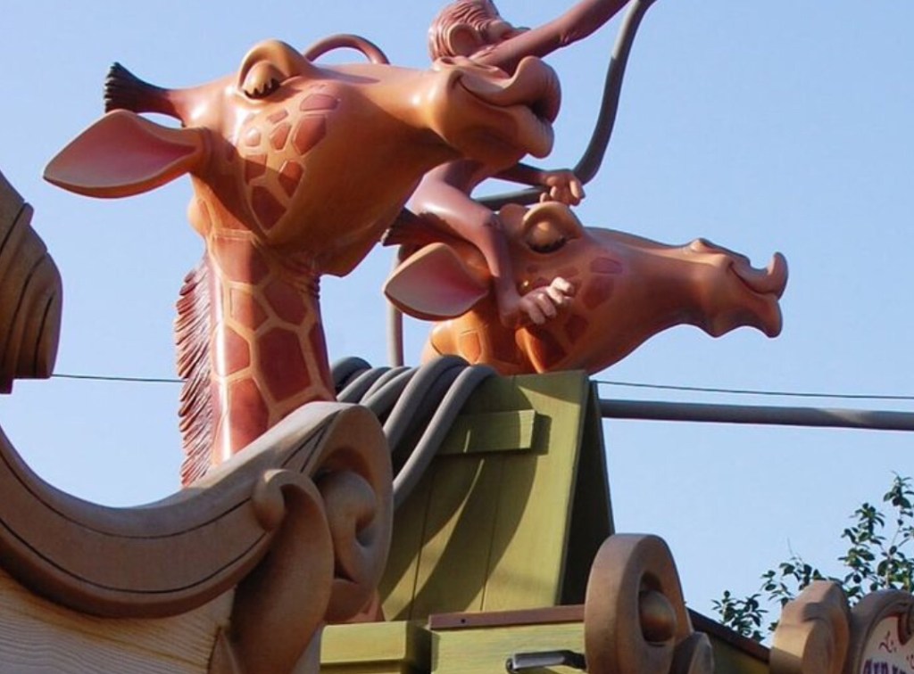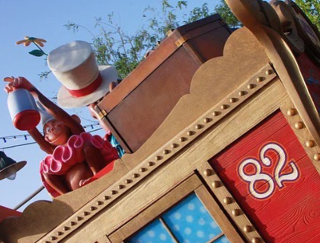 Uma fantástica área de recreação aquática inspirada no trem do circo de Dumbo, de Walt Disney.