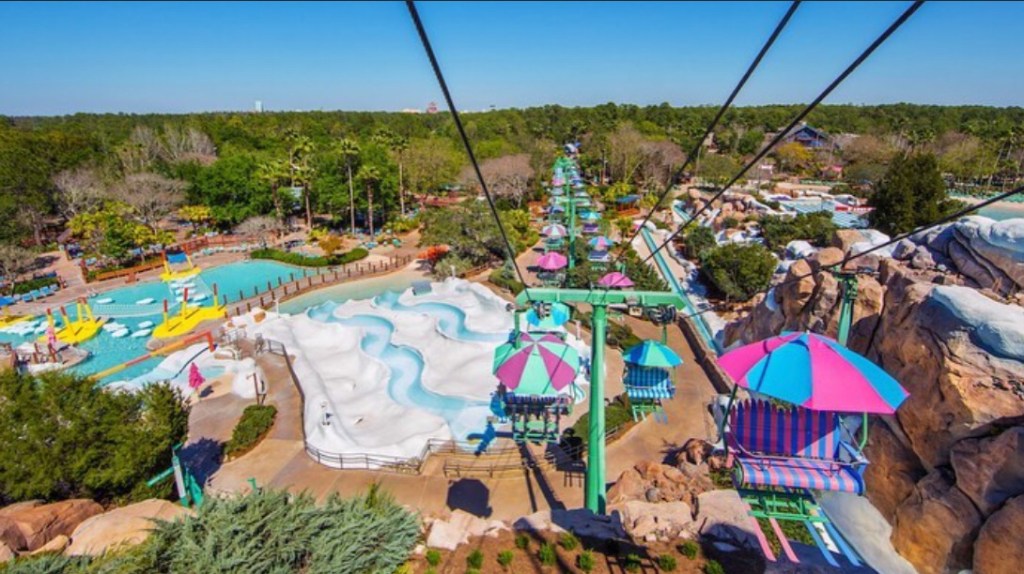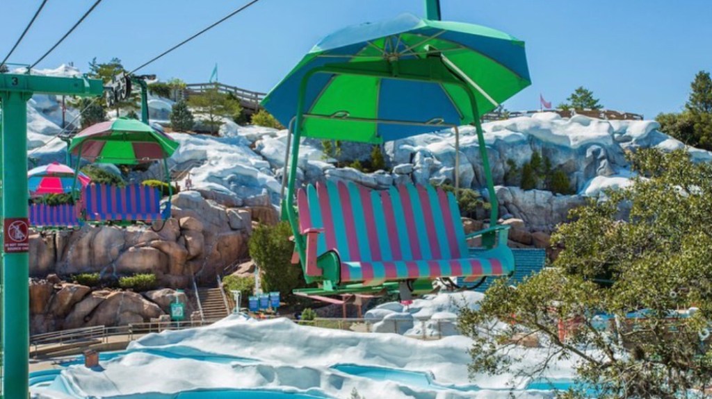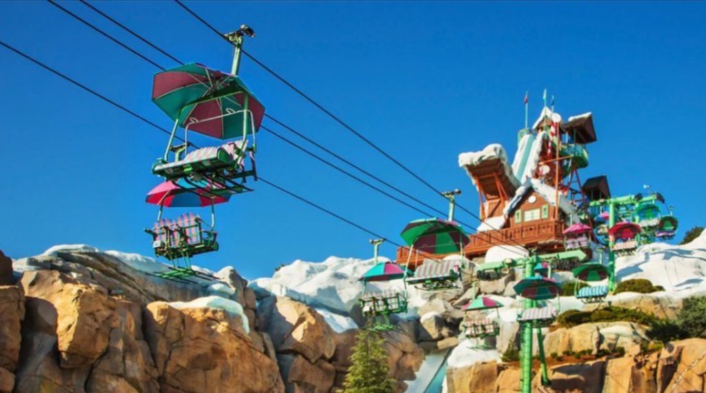 Todos os resorts de esqui têm um teleférico para levar os hóspedes até as montanhas, e o Disney’s Blizzard Beach Water Park não é exceção! Essa experiência em ritmo lento é uma maneira de acessar a entrada de diversas atrações sem esforço, como: