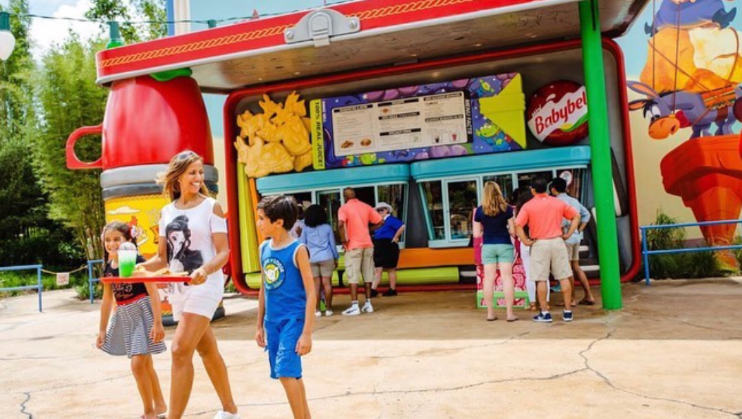 O Andy transformou a lancheira dele em uma lanchonete com janela-balcão no fundo do quintal que serve salgados e doces deliciosos, somente na Toy Story Land!