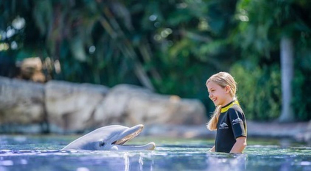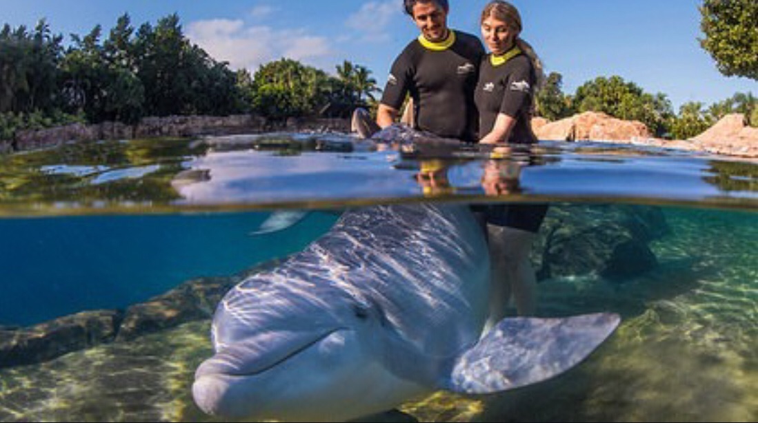 Você terá uma experiência exclusiva de natação com golfinho, começando com o seu grupo conhecendo um golfinho em uma das áreas de natação cristalinas. Em seguida, um especialista em cuidados com animais ensinará tudo sobre os hábitos dos golfinhos, comportamentos, suas incríveis habilidades de comunicação e os relacionamentos que eles constroem diariamente com esses animais incríveis.