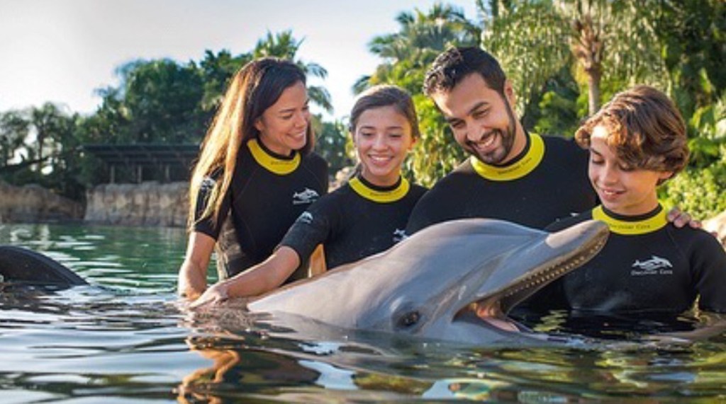 O Discovery Cove em Orlando, você receberá um tempo para sua interação com os golfinhos, deixando o resto da sua visita para simplesmente aproveitar seu dia no paraíso.