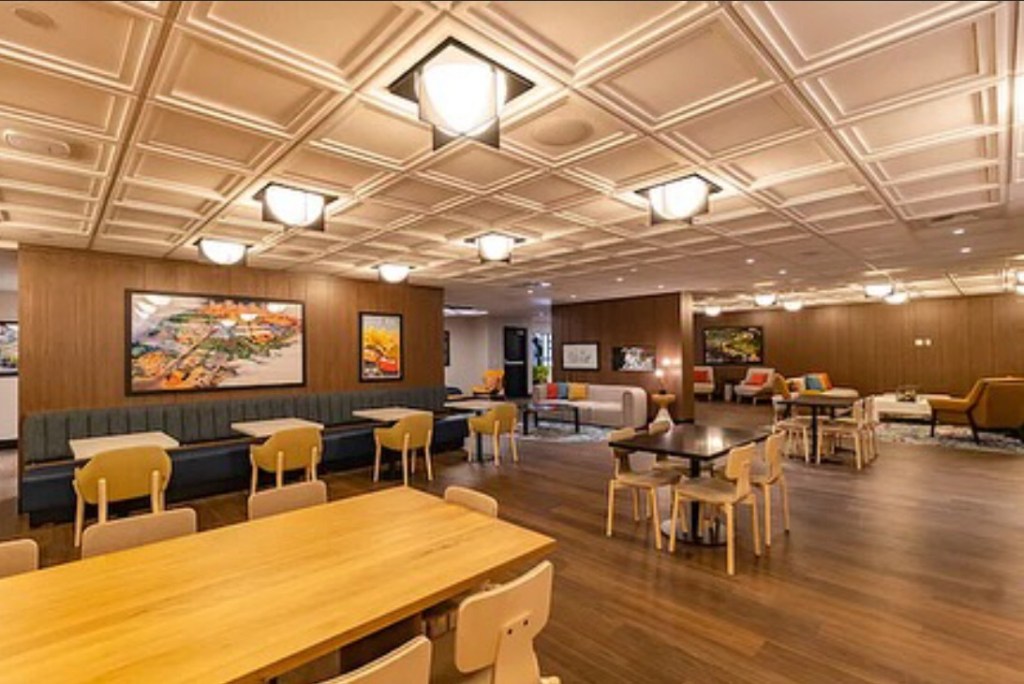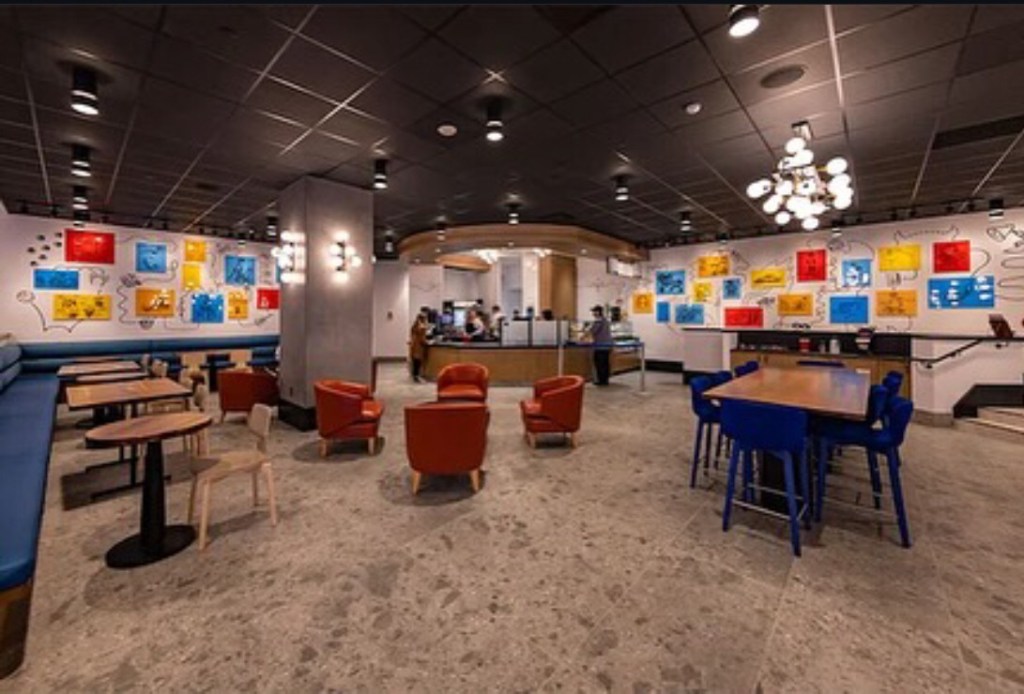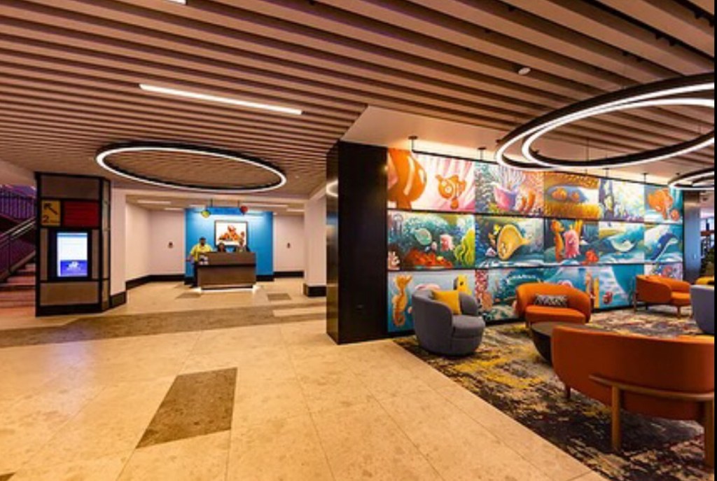 A icônica bola e luminária da Pixar agora recebe os hóspedes na entrada do lobby, com um móbile abstrato de personagens da Pixar flutuando na clarabóia acima. Você pode até ter um vislumbre da casa de Carl e Ellie em “Up” enquanto ela sobe e desce pelo elevador do saguão.