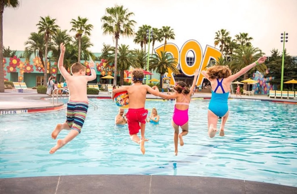 O Disney’s Pop Century Resort é uma cápsula do tempo da cultura pop ao longo das décadas, onde os hóspedes podem passar por ícones maiores que a vida do passado, de cubos de Rubik a recipientes Play-Doh.