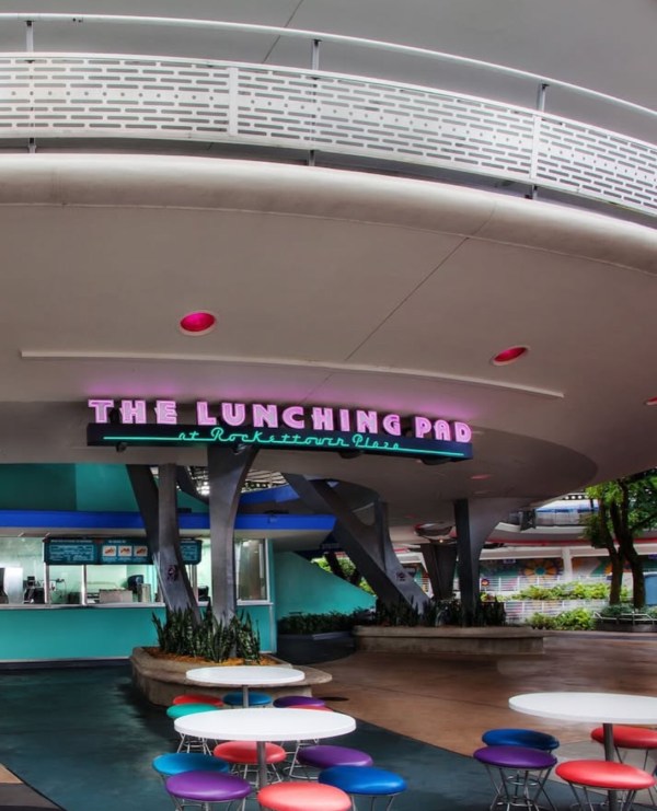 localizada: Tomorrowland - Magic Kingdom Park Recarregue as energias com delícias de outro mundo, incluindo cachorro-quente, pretzel especial, salgadinho chips, omeletes, Pão Sticky Bubble - pão doce enrolado em canela, caramelo e especiarias quentes.Bebidas: refrigerantes, Raspadinha Frozen, água.